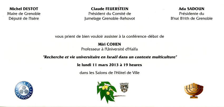Conférence de Miri Cohen, Professeur à l'univesité de Haïfa,
